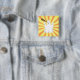 Botón de fantasma Trumpy lindo radiante. Este adorable fantasma está sobre un fondo de rayos naranjas y amarillos.