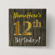 Chapa Cuadrada Faux Wood, Faux Gold 12th Birthday + Custom Name