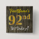 Chapa Cuadrada Faux Wood, Faux Gold 92nd Birthday + Custom Name