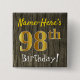 Chapa Cuadrada Faux Wood, Faux Gold 98th Birthday + Custom Name