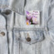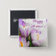 Feliz Día de la Madre Brillante botón de tulipanes morados y blancos. Para una mayor personalización, haga clic en el botón "Personalizar" y utilice nuestra herramienta de diseño para modificar esta plantilla.