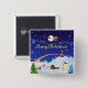 Hermosos paisajes de nieve con árboles de Navidad, casas, un hombre de nieve, una iglesia y un arcoiris con copos de nieve cayendo. Santa Claus sobrevolando una luna llena en la noche de los Navidades.