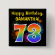 Esta diversión, características del diseño vibrantes del botón que un modelo colorido inspiró estallando los fuegos artificiales celebradores, junto con el número "73" teniendo un arco iris multicolor como espectro o modelo de la pendiente. También ofrece un nombre y un mensaje adaptables del acontecimiento, tal como un saludo del cumpleaños del "feliz cumpleaños". Un botón como esto se pudo llevar por las huéspedes en una fiesta de cumpleaños que era sostenida en conmemoración alguien el tercer cumpleaños setenta. [~Z0000334]