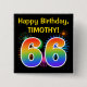 Este divertido y vibrante diseño de botones presenta un patrón colorido inspirado en fuegos artificiales de celebración reventando, junto con el número "66" que tiene un multicolor como el espectro o el gradiente. También incluye un nombre personalizado y un mensaje de evento, como un saludo de cumpleaños "feliz". Un botón como este puede ser usado por los asistentes a una fiesta de cumpleaños que se lleva a cabo para celebrar el 66º cumpleaños de alguien. [~Z0000334]
