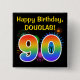 Este divertido y vibrante diseño de botones presenta un colorido estallido de fuegos artificiales de celebración inspirado, junto con el número "90" que tiene un multicolor como el espectro o el patrón gradiente. También incluye un nombre personalizado y un mensaje de evento, como un saludo de cumpleaños "feliz". Un botón como este puede ser usado por los asistentes en una fiesta de cumpleaños que se lleva a cabo en celebración del cumpleaños 90 de alguien. [~Z0000334]