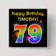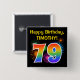 Este divertido y vibrante diseño de botones presenta un colorido estallido de fuegos artificiales de celebración inspirado, junto con el número "79" que tiene un multicolor como el espectro o el patrón gradiente. También incluye un nombre personalizado y un mensaje de evento, como un saludo de cumpleaños "feliz". Un botón como este puede ser usado por los asistentes a una fiesta de cumpleaños que se lleva a cabo para celebrar el cumpleaños setenta y nueve de alguien. [~Z0000334]