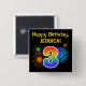 Este divertido y vibrante diseño de botones presenta un patrón colorido inspirado en fuegos artificiales de celebración reventando, junto con el número "3" que tiene un espectro multicolor inspirado en el arcoiris o un patrón de gradiente. También incluye un nombre de personalizable y un mensaje de evento, como un saludo de cumpleaños "Feliz". Un botón como este puede ser usado por los asistentes a una fiesta de cumpleaños que se lleva a cabo para celebrar el tercer cumpleaños de alguien. [~Z0000334]