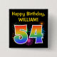 Este divertido y vibrante diseño de botones presenta un patrón colorido inspirado en fuegos artificiales de celebración reventando, junto con el número "54" que tiene un multicolor como el espectro o el gradiente. También incluye un nombre de personalizable y un mensaje de evento, como un saludo de cumpleaños "Feliz". Un botón como este puede ser usado por los invitados en una fiesta de cumpleaños que se lleva a cabo para celebrar el cincuenta y cuarto cumpleaños de alguien. [~Z0000334]