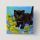 Un botón con un gato al estilo Van Gogh con girasoles. Un gatito negro bonito cuidadosamente posa con flores amarillas. ¡Un regalo fabuloso para los amantes del gato y para los coleccionistas holandeses de arte!