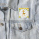 Este tierno y caprichoso botón puede ser personalizado con un nombre o título, como papá, abuelo, tío, hermano mayor, etc. El diseño incluye una adorable jirafa con una corona de flores y adornos florales amarillos con confetti falso purpurina de oro. El texto combina guiones manuscritos y sans serif para un estilo elegante y moderno. Es perfecto para una ducha con motivos de jirafa. Gráficos de heyiamalice y SunflowerDayLove