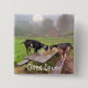 Este hermoso botón tiene 2 cabras felices comiendo su cena mientras el sol se pone en una granja de Connecticut.