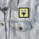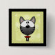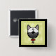 El rostro adorable de un personalizado grisáceo gato de tabby se ve con un collarín rojo y un fondo amarillo con un borde amarillo más oscuro. Diseño original de Christie Black de Creations from the Heart.