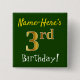 Chapa Cuadrada Green, Faux Gold 3Cumpleaños, Con Nombre Personali