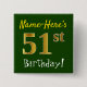 Chapa Cuadrada Green, Faux Gold 51st Birthday, con nombre persona