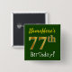 Este sencillo diseño de botón cuadrado muestra un mensaje como "¡Nombre, este es el cumpleaños número 77!", con el "77" con un aspecto falso/imitación de color dorado, en un fondo de color verde. El nombre se puede personalizar. Botones como este podrían ser usados por los invitados en una fiesta de cumpleaños para alguien que está celebrando su cumpleaños setenta y siete, donde el fiesta está siendo retenido en un gran área con muchas otras personas presentes (como un parque de la ciudad o un parque temático). [~Z0000163]