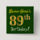 Chapa Cuadrada Green, Faux Gold 89th Birthday, con nombre persona