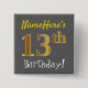 Chapa Cuadrada Gris, Faux Gold 13 cumpleaños, con nombre personal