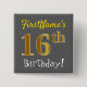 Chapa Cuadrada Gris, Faux Gold 16th Birthday, con nombre personal