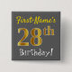 Chapa Cuadrada Gris, Faux Gold 28th Birthday, con nombre personal