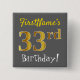 Chapa Cuadrada Gris, Faux Gold 33 cumpleaños, con nombre personal