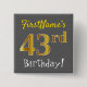 Chapa Cuadrada Gris, Faux Gold 43 cumpleaños, con nombre personal