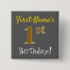 Chapa Cuadrada Gris, Faux Gold Primer Cumpleaños, Con Nombre Pers