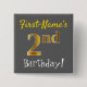 Este sencillo diseño de botón cuadrado muestra un mensaje como "¡El segundo cumpleaños de First Name!", con el "segundo" con un aspecto de color falso/imitación dorado, en un fondo de color gris (gris). El nombre se puede personalizar. Botones como este podrían ser usados por los invitados en una fiesta de cumpleaños para alguien que está celebrando su segundo cumpleaños, donde el fiesta está siendo retenido en una gran zona con muchas otras personas presentes (como un parque de la ciudad o un parque temático). [~Z0000192]