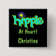 Muestra que eres un hippie en el corazón con esta insignia de nombre que puedes usar para presentarte a fiestas, reuniones y otros eventos divertidos o ponerte en el trabajo. Revive esta época con esta llamativa palabra arte "hippie" en azul turquesa y delineado en verde cal brillante sobre un fondo negro que puedes cambiar. Las palabras de personalizable "en el corazón" están debajo de la palabra Hippie. Personalice su nombre en la parte inferior o elimine si sólo desea usar el pin de insignia de Hippie. La colorida y elegante palabra gráfica hippie tiene la primera en salpicada de una flor, delineada en morado lavanda en un estilo de los años 70. Celebra la actitud hippie y el estilo de vida y con diversión con un retroceso retro a finales de los 60 y principios de los 70 con estilo. Los colores son azul turquesa, verde limón y violeta lavanda. Personalizable total de hacerlo propio. El arte original es de Phyllis Dobbs.