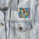 Una insignia de botón brillante y divertida para personalizar con la foto y el nombre de tu gato. El fondo es colorido y llamativo, con grandes flores en un estilo campestre e hippie. La foto de tu mascota aparecerá dentro del "marco" cuadrado en la parte superior, mientras que la leyenda "Gato Guay" y el nombre de tu mascota aparecen debajo de la foto en tipografía retro. Una forma divertida de celebrar a tu mascota, el botón hace un regalo lindo para los amantes de los gatos.