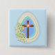 La Cruz de madera brillante está enmarcada con las Lilillas blancas y el huevo de ventana para simbolizar el renacimiento. El fondo es una bonita sombra de agua. Un encantador diseño religioso simbólico.