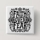 El botón de la fe sobre el miedo. Salmo de verso de la Biblia cita a un fiel chica cristiano. Tener fé lindo accesorio de ropa estética floral retro groovy.