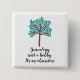 Este botón de genealogía presenta un árbol con hojas azules y la leyenda "La genealogía no es un hobby es una obsesión".