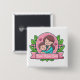 Hermoso insignia/alfiler ideal para el Día de la Madre. Una linda ilustración de una madre y su hijo dándose un abrazo cariñoso. Ambos llevan una camisa azul y tienen cabello castaño. Ambos tienen una sonrisa cariñosa y mejillas sonrosadas. Están dentro de un círculo rosa con destellos y dos corazones de amor alrededor. Debajo de ellos hay una pancarta rosa con una escritura elegante que dice 'La mejor mamá del mundo', este es un modelo que se puede utilizar tal cual o reemplazar el texto original con el propio para personalizar. Alrededor del círculo y la pancarta hay hojas verdes y flores rosas. Un bonito dibujo ideal para tu mamá.