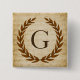 Una delicada corona de laurel está recubierta por un telón de fondo de chapa vintage de estilo romano clásico. Este diseño se personaliza con el monograma "G" en un rico tono de siena.
