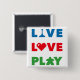 Chapa Cuadrada Live, Love, Play Colorful Button