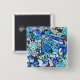 Música, flores y hojas componen este cuadro vibrante con un patrón floral que mezcla tonos azules y líneas negras. Diferentes tipos de flores, así como hojas, mariposa y notas musicales están apretadas para crear un diseño animado y decorativo.