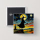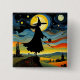 A.I. creé la huella de una silueta de una bruja con un alto gorra y una bata que fluye, y sobresale en un paisaje que presenta un castillo y casas pintorescas en un contexto de cielos giratorios y lunas brillantes.