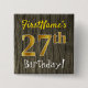 Este diseño simple de botón cuadrado presenta un mensaje como "¡Cumpleaños 27 de FirstName!", con el "27" teniendo un aspecto de color dorado falso/imitación, sobre un fondo con patrón de madera falsa/imitación. El nombre se puede personalizar. Botones como estos podrían ser usados por invitados en una fiesta de cumpleaños para alguien que está celebrando su vigésimo séptimo cumpleaños, donde la fiesta se lleva a cabo en una gran área con mucha gente presente (como un parque de la ciudad o un parque temático). [~Z0000167]