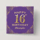 16.ª fiesta de cumpleaños botón de marco morado y Purpurina dorado. Para una mayor personalización, haga clic en el botón "Personalizar" y utilice nuestra herramienta de diseño para modificar esta plantilla.