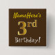 Chapa Cuadrada Marrón, Faux Gold Tercer Cumpleaños, Con Nombre Pe