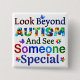 Inspiradora cita de "Mira más allá del AUTISMO y ves a alguien especial" con coloridos rompecabezas de autismo para apoyar a los niños autistas y sus familias.