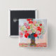 Botón que muestra la pintura floral de Claude Monet. Hermosas peonías rojas, amarillas y blancas en un jarrón azul. Un gran regalo de Monet para los amantes del impresionismo y el arte francés.