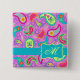 Chapa Cuadrada Monograma de paisley moderno turquesa magenta rosa