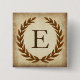 Una delicada corona de laurel está recubierta de un fondo de papiro envejecido al estilo romano clásico. Este diseño se personaliza con el monograma "E" en un rico tono de siena.