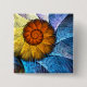 Naranja floral botón Arte abstracto azul amarillo (cuadrado)