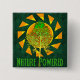 Un símbolo solar basado en una rueda giratoria sostiene un árbol en el centro con las palabras "Naturaleza alimentada". En amarillo, naranja y verde para representar el sol y la tierra y todas las cosas en crecimiento.