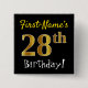 Chapa Cuadrada Negro, Faux Gold 28th Birthday, con nombre persona
