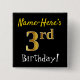 Chapa Cuadrada Negro, Faux Gold 3º cumpleaños, con nombre persona