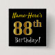 Chapa Cuadrada Negro, Faux Gold 88th Birthday, con nombre persona