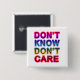 Chapa Cuadrada No sepa, no cuide las camisetas, botones, tazas